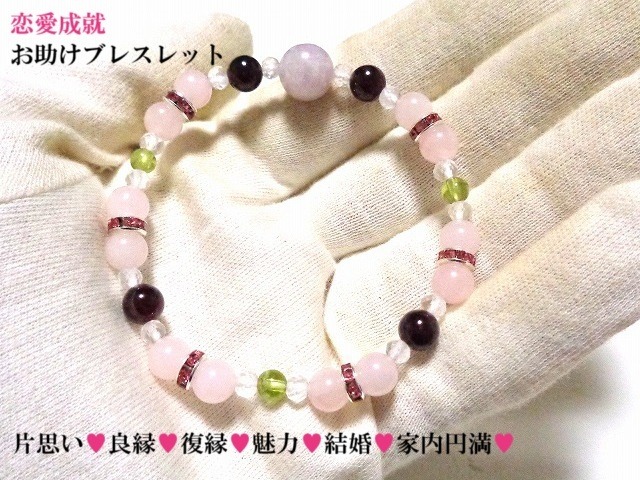恋愛成就お助けブレスレット★愛を呼び込む・片思い・良縁・恋愛成就・魅力・男運UP・愛され運UP・モテ運UP・女性らしさ★ローズクォーツ・クンツアイト・ペリドッド・水晶★ブレスレット★パワーストーン★護符(霊符)