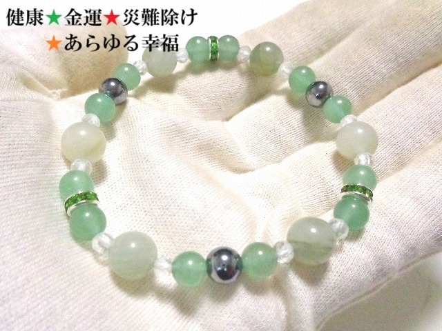 健康運UP・がん・病気退散・病魔退散・各種病気・金運・商売繁盛・災難除け・あらゆる幸福・人間関係向上★男女兼用★テラヘルツ・翡翠・水晶★ブレスレット★パワーストーン★護符(霊符)