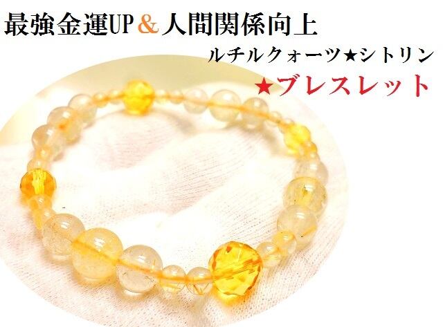 人間関係向上・最強金運・くじ運・財運・願い叶う・ギャンブル運UP・商売繁盛・友情UP★丸玉☆ルチルクォーツ★ブレスレット★シトリン★パワーストーン★護符(霊符)