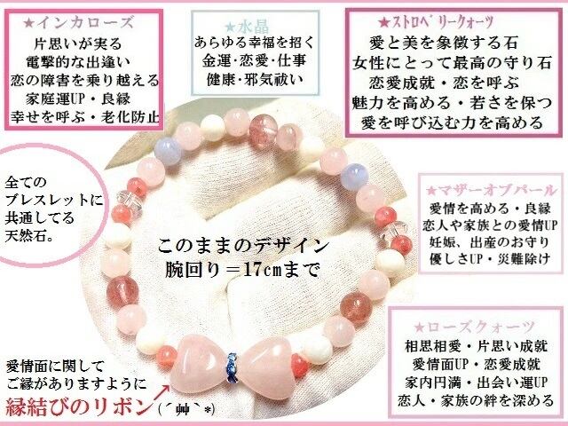 恋愛成就・良縁・絆・片思い・結婚・復縁・成就・縁結び・浮気封じ・友情・子宝★リボンブレスレット★インカローズ・ストロベリークォーツ・マザーオブパール・水晶★恋愛専用★LOVE★恋愛ブレスレット★ブレスレット★パワーストーン★護符(霊符)