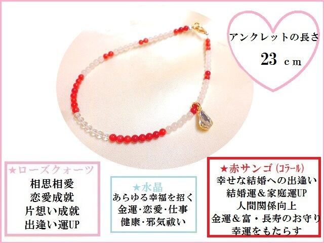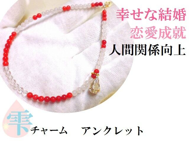 幸せな結婚・恋愛成就・人間関係向上★ローズクォーツ・赤サンゴ★恋愛★アンクレット★雫・しずく・ドロップ★ガラスストーン★風水★パワーストーン★護符(霊符)