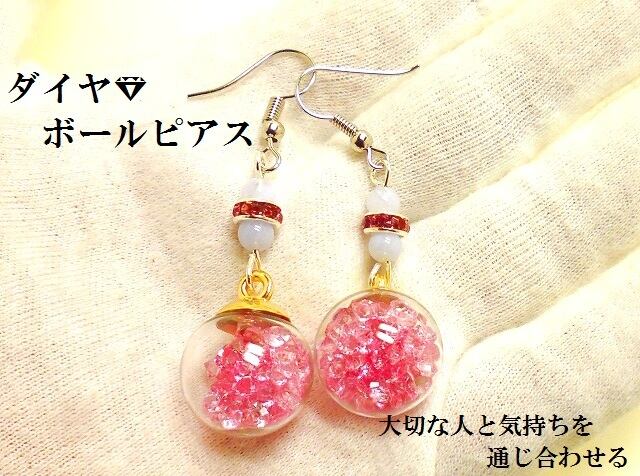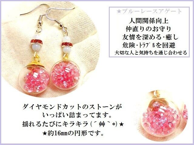 ピアス★大切な人と気持ちを通じ合わせる・人間関係向上★ブルーレースアゲート★ピンク★ダイヤ★円形★LOVE運UP★ゆらゆら効果★フックピアス☆ピアス★パワーストーン★護符(霊符)