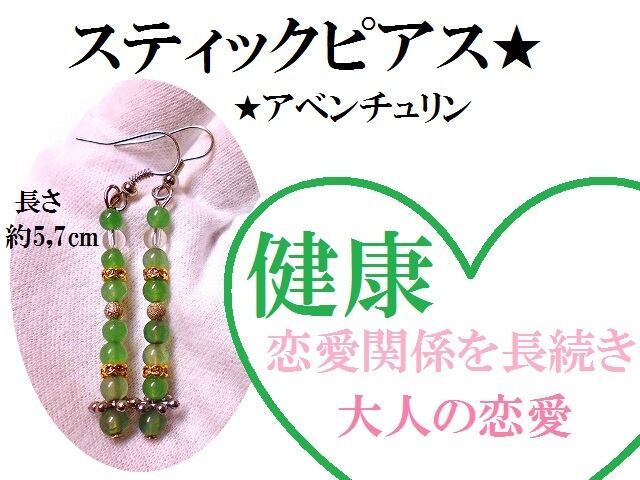 ピアス★恋愛関係を長続き・大人の恋愛・健康★アベンチュリン★LOVE運UP★ゆらゆら効果★フックピアス★メタルスティックピアス★パワーストーン★護符(霊符)