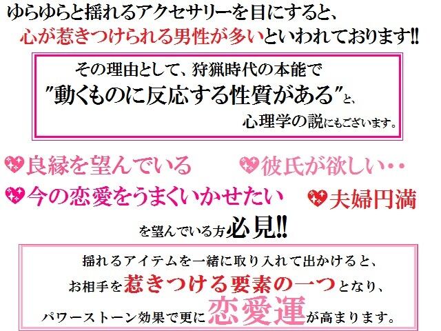 良縁を望んでいる方は、いつ運命の出逢いがあるかわかりませんので、常にゆらゆら形のアクセサリーをお付けになる事をお勧めいたします(^人^)