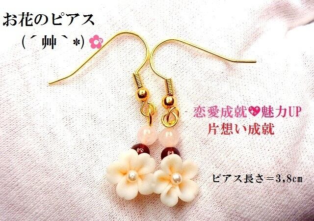 ピアス★恋愛成就・魅力UP・片思い成就★ガーネット・ローズクォーツ★花★LOVE運UP★ゆらゆら効果★フックピアス☆ピアス★パワーストーン★護符(霊符)