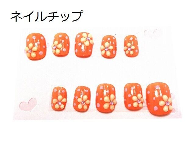 ネイルチップ★ジェル仕上げ★付け爪・つけ爪★花★橙・オレンジ★シンプル系★フリーサイズ★ネイルチップ★K
