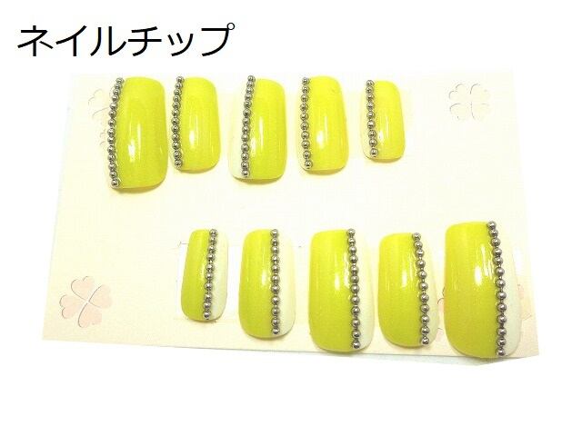 ネイルチップ★硬め仕上げ★付け爪・つけ爪★チェーン★黄色・イエロー★かわいい・かっこいい系★フリーサイズ★ネイルチップ★K