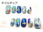 ネイルチップ★硬め仕上げ★付け爪・つけ爪★マリン・海・貝★青・ブルー・水色★きれい系★フリーサイズ★ネイルチップ★K