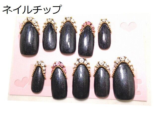 ネイルチップ★硬め仕上げ★付け爪・つけ爪★フレンチ★ブラック★きれい系★フリーサイズ★ネイルチップ★K