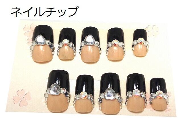 ネイルチップ★硬め仕上げ★付け爪・つけ爪★フレンチ★ブラック・ベージュ★きれい系★フリーサイズ★ネイルチップ★K