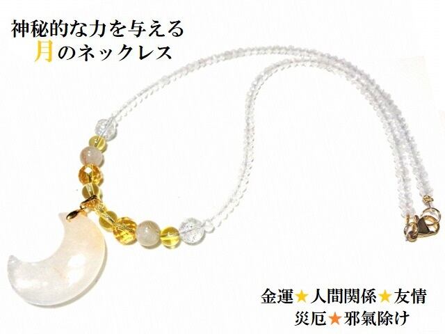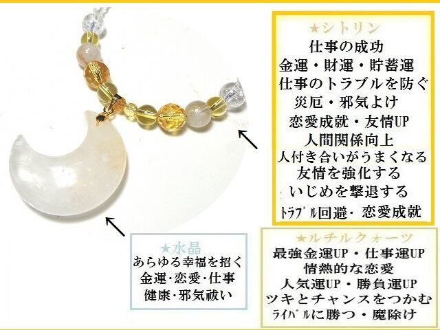 人間関係・友情・いじめ・災厄・災難・邪気邪念・富・名声・金運・ツキとチャンス・お守り★月★シトリン・水晶・ルチルクォーツ★ステンレス316L★ネックレス★パワーストーン★護符(霊符)