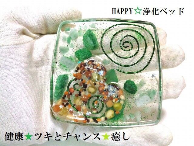 健康・癒し・ツキとチャンス☆アベンチュリン・翡翠★ハッピーシード★風水★浄化★パワーストーン★ストーンプレート★ハッピー浄化ベッド☆HAPPY★オルゴナイト★護符(霊符)