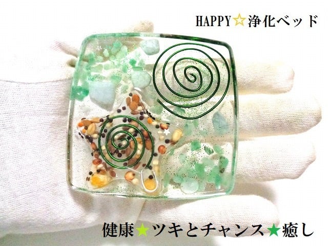 健康・癒し・ツキとチャンス☆アベンチュリン・翡翠★ハッピーシード★風水★浄化★パワーストーン★ストーンプレート★ハッピー浄化ベッド☆HAPPY★オルゴナイト★護符(霊符)