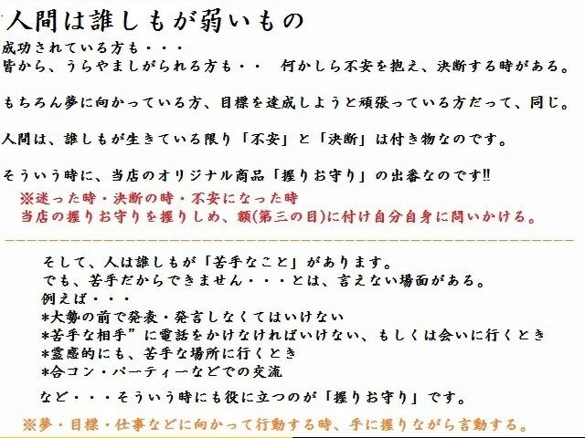 こちらの商品は、当店オリジナル商品の願掛けもできる「握りお守り」です。