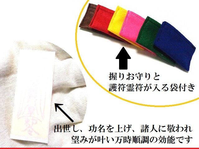 こちらの商品は護符霊符と握りお守りが一緒に入る袋付きです。