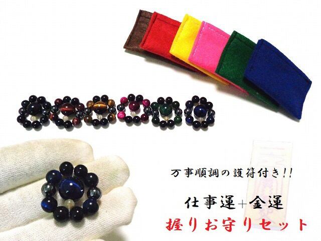 [万時順調!!]仕事運UP・勝負運UP・魔除・邪気邪念・金運・大願成就・人間関係・洞察力・恋愛・良縁★MIXカラー★オニキス・ヘマタイト・ルチルクォーツ・タイガーアイ・イエロー・ブルー・ピンク・グリーン・ホークアイ★握りお守り★パワーストーン★護符(霊符)