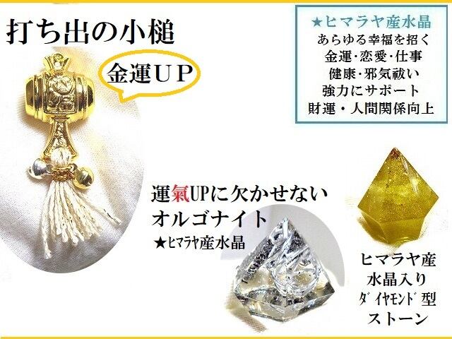 打ち出の小槌・ダイヤモンド型オルゴナイト(クリア)・ゴールドのダイヤモンド型ストーンは接着されておりませんので自由においてください。