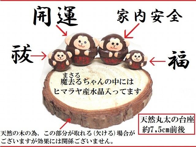 ※さるちゃん4体・サンキャッチャー1本・打ち出の小槌・ダイヤモンド型オルゴナイト(クリア)・ゴールドのダイヤモンド型ストーン・天然木の台座です。