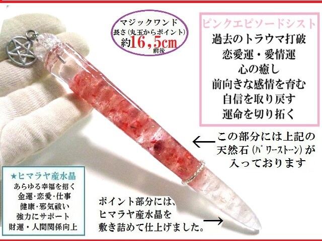 過去のトラウマ打破・恋愛運・愛情運・心の癒し・前向き・自信を取り戻す・運命を切り拓く★ピンクエピソードシスト・ヒマラヤ産水晶★魔法・魔術★魔法の杖★プレミアム★マジックワンド★ヒーリングマジックワンド★パワーストーン★護符(霊符)