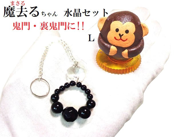魔去るちゃん水晶セット★鬼門・裏鬼門★L★運気UPセット★風水セット★まさるちゃん★サル・さる・猿・申★魔除★水晶★運気UP★生霊・悪霊★邪気邪念★パワーストーン★護符(霊符)