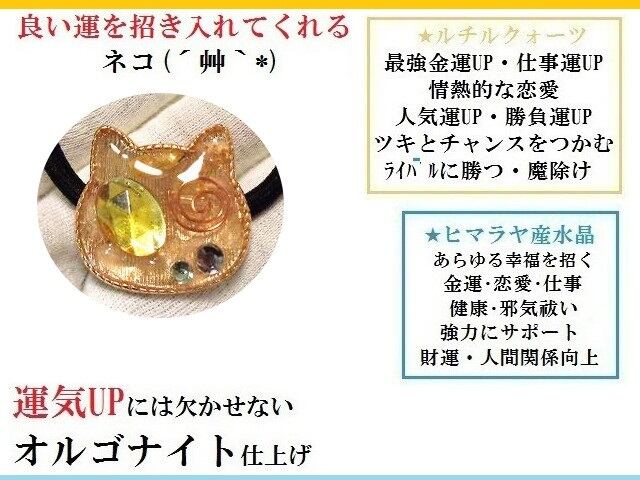 金運UP・くじ運UP・ギャンブル運UP・ツキとチャンス・魅力・あらゆる幸福★ルチルクォーツ・ヒマラヤ産水晶★ヘアゴム★猫・ねこ・ネコ★パワーストーン★護符(霊符)