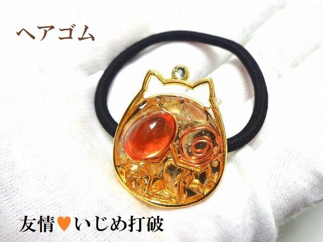 友情・友人・いじめ打破・人間関係★シトリン・水晶★ヘアゴム★猫・ねこ・ネコ★オルゴナイト★パワーストーン★護符(霊符)