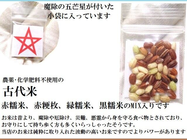 天災・災害・災難・災厄・戦争から身を守る★持ち歩き用★護符セット★古代米・赤粳枚、赤糯米、緑糯米、黒糯米、祓塩・鹽・水晶・五芒星★パワーストーン★護符(霊符)