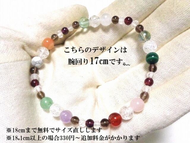 こちらのブレスレットのデザイン(写真通り)は、17cmです。